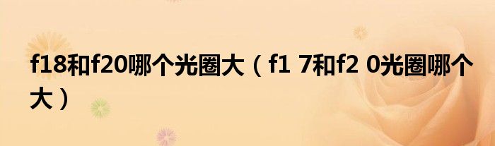 大家好,小晋来为大家解答以下问题,关于f18和f20哪个光圈大,f1 7和f2 0光圈哪个大很多人还不知道,今天让我们一起来看看吧!