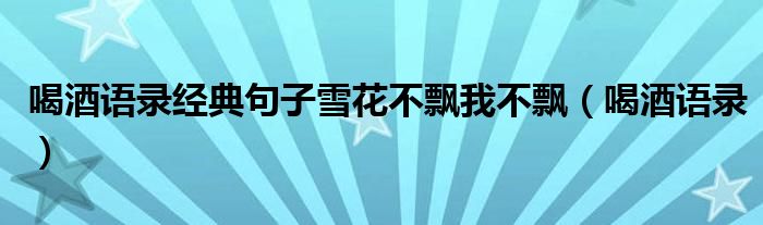 大家好,小晋来为大家解答以下问题,关于喝酒语录经典句子雪花不飘我不飘,喝酒语录很多人还不知道,今天让我们一起来看看吧!