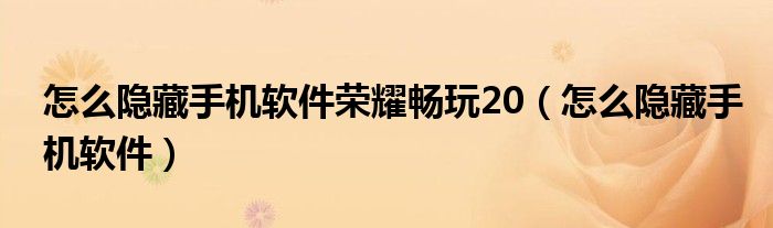 大家好,小晋来为大家解答以下问题,关于怎么隐藏手机软件荣耀畅玩20,怎么隐藏手机软件很多人还不知道,今天让我们一起来看看吧!