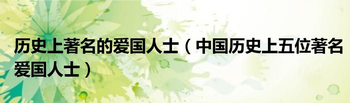 关于历史上著名的爱国人士,中国历史上五位著名爱国人士这个很多人还不知道,今天菲菲来为大家解答以上的问题,现在让我们一起来看看吧!