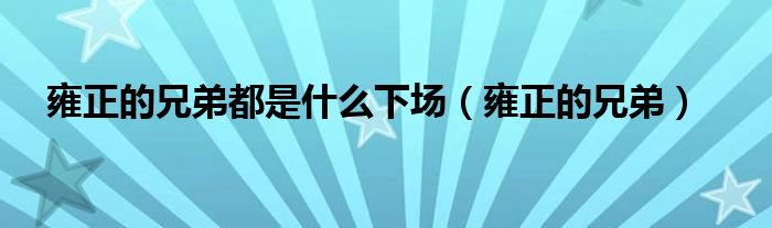 大家好,小晋来为大家解答以下问题,关于雍正的兄弟都是什么下场,雍正的兄弟很多人还不知道,今天让我们一起来看看吧!