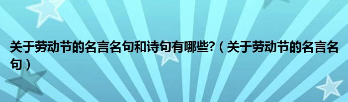大家好,小晋来为大家解答以下问题,关于关于劳动节的名言名句和诗句有哪些?,关于劳动节的名言名句很多人还不知道,今天让我们一起来看看吧!