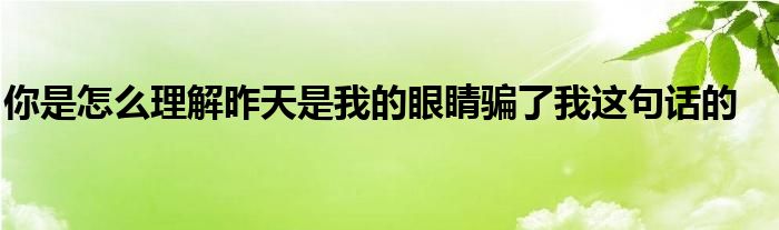 关于你是怎么理解昨天是我的眼睛骗了我这句话的这个很多人还不知道,今天菲菲来为大家解答以上的问题,现在让我们一起来看看吧!