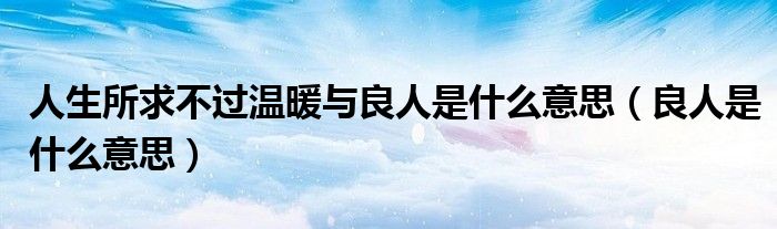 大家好,小晋来为大家解答以下问题,关于人生所求不过温暖与良人是什么意思,良人是什么意思很多人还不知道,今天让我们一起来看看吧!