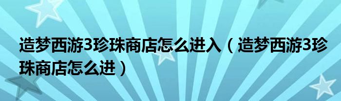 关于造梦西游3珍珠商店怎么进入,造梦西游3珍珠商店怎么进这个很多人还不知道,今天菲菲来为大家解答以上的问题,现在让我们一起来看看吧!