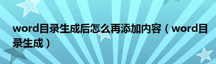 大家好,小飞来为大家解答以上问题,word目录生成后怎么再添加内容,word目录生成很多人还不知道,现在让我们一起来看看吧!