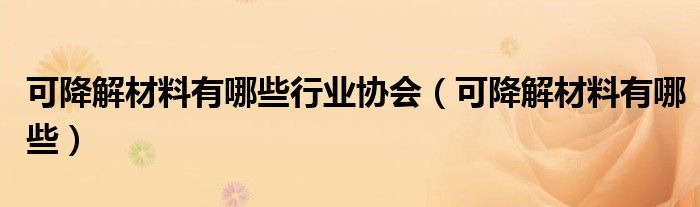 关于可降解材料有哪些行业协会,可降解材料有哪些这个很多人还不知道,今天菲菲来为大家解答以上的问题,现在让我们一起来看看吧!