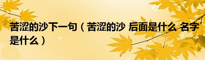 关于苦涩的沙下一句,苦涩的沙 后面是什么 名字是什么这个很多人还不知道,今天菲菲来为大家解答以上的问题,现在让我们一起来看看吧!