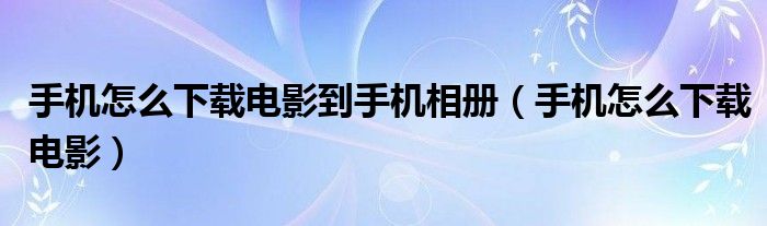 11、手机怎么下载电影?这就是今天为大家介绍的两种不同的下载方式。希望能帮到你。