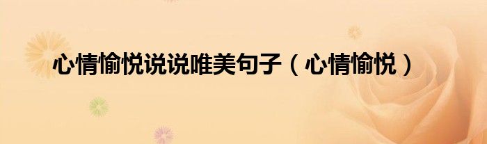 关于心情愉悦说说唯美句子,心情愉悦这个很多人还不知道,今天菲菲来为大家解答以上的问题,现在让我们一起来看看吧!