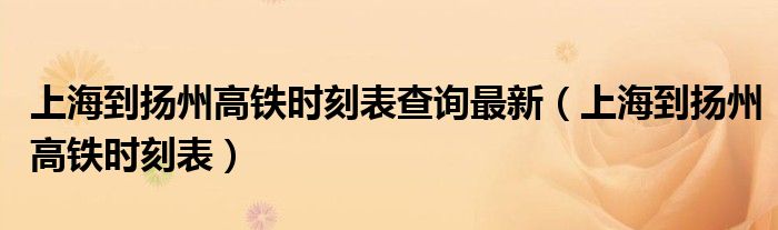 关于上海到扬州高铁时刻表查询最新,上海到扬州高铁时刻表这个很多人还不知道,今天菲菲来为大家解答以上的问题,现在让我们一起来看看吧!