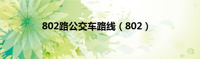 大家好,来宝来为大家解答以下问题,802路公交车路线,802很多人还不知道,今天让我们一起来看看吧!
