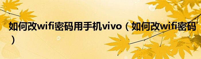 大家好,小飞来为大家解答以上问题,如何改wifi密码用手机vivo,如何改wifi密码很多人还不知道,现在让我们一起来看看吧!