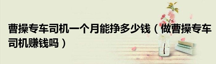 曹操专车司机一个月能挣多少钱(做曹操专车司机赚钱吗)