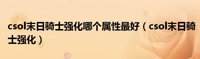 csol末日骑士强化哪个属性最好,csol末日骑士强化这个很多人还不知道,小飞来为大家解答以上的问题。现在让我们一起来看看吧!