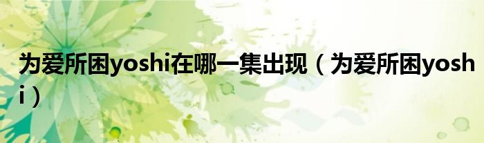 为爱所困yoshi在哪一集出现,为爱所困yoshi这个很多人还不知道,小飞来为大家解答以上的问题。现在让我们一起来看看吧!
