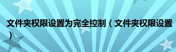 大家好,小飞来为大家解答以上问题,文件夹权限设置为完全控制,文件夹权限设置很多人还不知道,现在让我们一起来看看吧!
