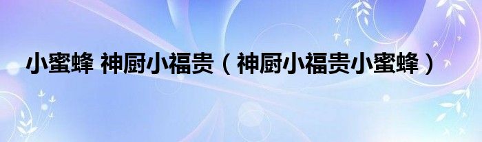 大家好,小晋来为大家解答以下问题,关于小蜜蜂 神厨小福贵,神厨小福贵小蜜蜂很多人还不知道,今天让我们一起来看看吧!