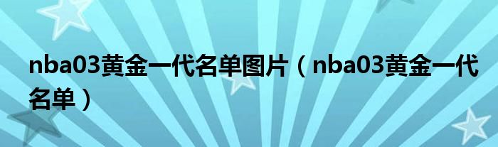 关于nba03黄金一代名单图片,nba03黄金一代名单这个很多人还不知道,今天菲菲来为大家解答以上的问题,现在让我们一起来看看吧!