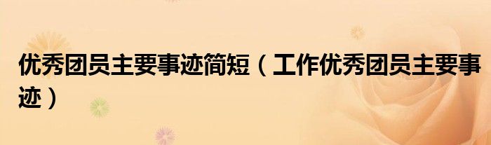关于优秀团员主要事迹简短,工作优秀团员主要事迹这个很多人还不知道,今天菲菲来为大家解答以上的问题,现在让我们一起来看看吧!