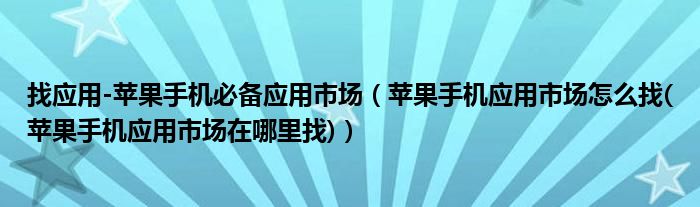 大家好,小常来为大家解答以上问题。找应用-苹果手机必备应用市场,苹果手机应用市场怎么找(苹果手机应用市场在哪里找)很多人还不知道,现在让我们一起来看看吧!