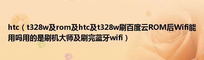大家好,小常来为大家解答以上问题。htc,t328w及rom及htc及t328w刷百度云ROM后Wifi能用吗用的是刷机大师及刷完蓝牙wifi很多人还不知道,现在让我们一起来看看吧!