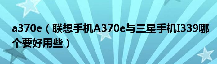 1,联想手机A370e与三星手机I339哪个要好用些:必须是联想的啊,两个都是低配机,相比之下联想好点,A370e是新出的,系统优化会好些