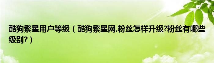 大家好,小太来为大家解答以上问题。酷狗繁星用户等级,酷狗繁星网,粉丝怎样升级?粉丝有哪些级别?很多人还不知道,现在让我们一起来看看吧!