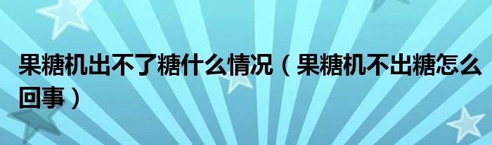 果糖机出不了糖什么情况(果糖机不出糖怎么回事)