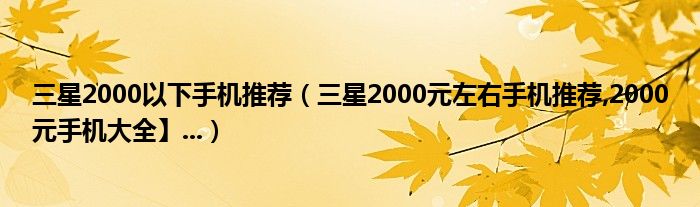 大家好,小常来为大家解答以上问题。三星2000以下手机推荐,三星2000元左右手机推荐,2000元手机大全】...很多人还不知道,现在让我们一起来看看吧!
