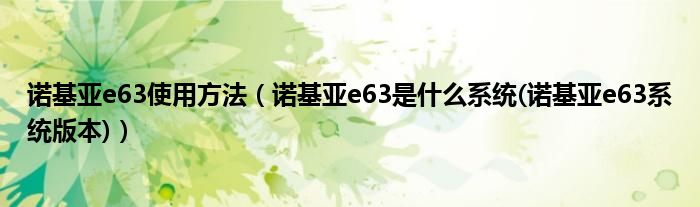 诺基亚e63使用方法(诺基亚e63是什么系统(诺基亚e63系统版本))