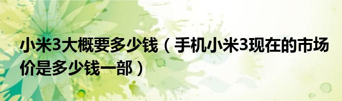 大家好,小常来为大家解答以上问题。小米3大概要多少钱,手机小米3现在的市场价是多少钱一部很多人还不知道,现在让我们一起来看看吧!