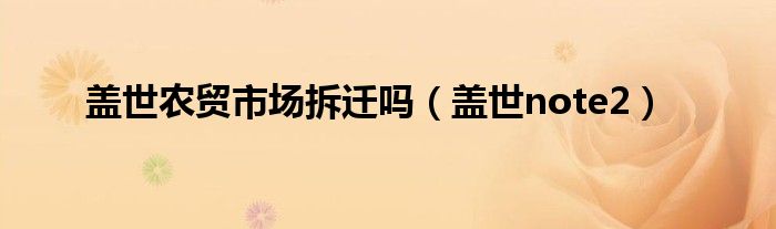 大家好,慧慧来为大家解答以上问题,盖世农贸市场拆迁吗,盖世note2很多人还不知道,现在让我们一起来看看吧!