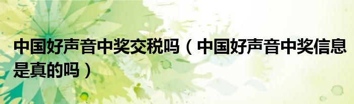 大家好,慧慧来为大家解答以上问题,中国好声音中奖交税吗,中国好声音中奖信息是真的吗很多人还不知道,现在让我们一起来看看吧!