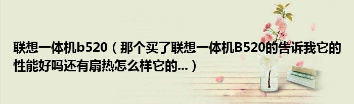 1,那个买了联想一体机B520的告诉我它的性能好吗还有扇热怎么样它的...:恩挺不错的