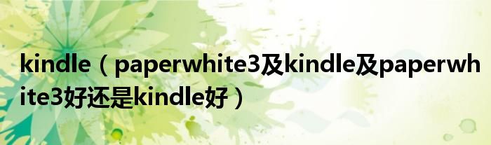 1,kindle paperwhite3好还是kindle好 :总体kp3要好,无论做工还是配置。但kindle带背光的设备有个坑的地方是背光关不掉,而且带背光的设备容易买到有漏光的。