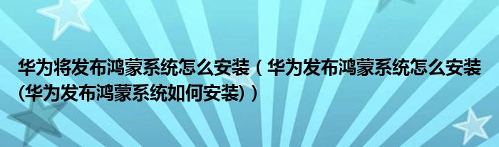 大家好,小常来为大家解答以上问题。华为将发布鸿蒙系统怎么安装,华为发布鸿蒙系统怎么安装(华为发布鸿蒙系统如何安装)很多人还不知道,现在让我们一起来看看吧!