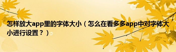 大家好,今天小悦来为大家解答以上问题。怎样放大app里的字体大小,怎么在看多多app中对字体大小进行设置?很多人还不知道,现在让我们一起来看看吧!