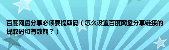 大家好,今天小悦来为大家解答以上问题。百度网盘分享必须要提取码,怎么设置百度网盘分享链接的提取码和有效期?很多人还不知道,现在让我们一起来看看吧!