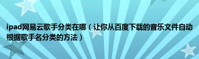 大家好,今天小悦来为大家解答以上问题。ipad网易云歌手分类在哪,让你从百度下载的音乐文件自动根据歌手名分类的方法很多人还不知道,现在让我们一起来看看吧!