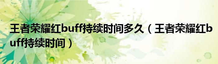 大家好,慧慧来为大家解答以上问题,王者荣耀红buff持续时间多久,王者荣耀红buff持续时间很多人还不知道,现在让我们一起来看看吧!