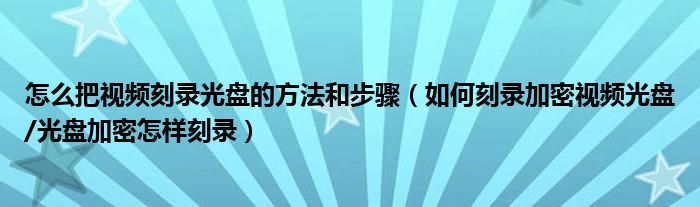 大家好,今天小悦来为大家解答以上问题。怎么把视频刻录光盘的方法和步骤,如何刻录加密视频光盘/光盘加密怎样刻录很多人还不知道,现在让我们一起来看看吧!