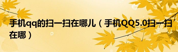 大家好,今天小悦来为大家解答以上问题。手机qq的扫一扫在哪儿,手机QQ5.0扫一扫在哪很多人还不知道,现在让我们一起来看看吧!