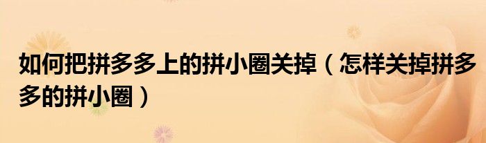 大家好,跳跳为你解答以上问题。如何把拼多多上的拼小圈关掉,怎样关掉拼多多的拼小圈这个问题很多人还不知道,现在让我们一起来看看吧!