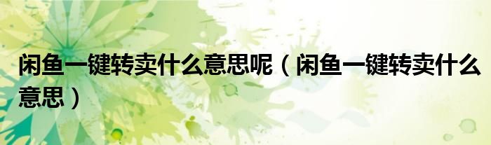 大家好,跳跳为你解答以上问题。闲鱼一键转卖什么意思呢,闲鱼一键转卖什么意思这个问题很多人还不知道,现在让我们一起来看看吧!
