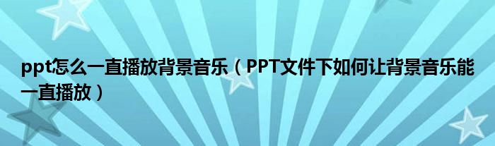 大家好,今天小悦来为大家解答以上问题。ppt怎么一直播放背景音乐,PPT文件下如何让背景音乐能一直播放很多人还不知道,现在让我们一起来看看吧!