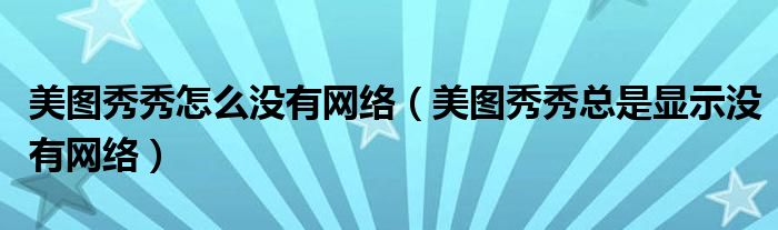 大家好,跳跳为你解答以上问题。美图秀秀怎么没有网络,美图秀秀总是显示没有网络这个问题很多人还不知道,现在让我们一起来看看吧!