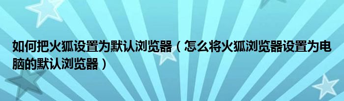 大家好,今天小悦来为大家解答以上问题。如何把火狐设置为默认浏览器,怎么将火狐浏览器设置为电脑的默认浏览器很多人还不知道,现在让我们一起来看看吧!