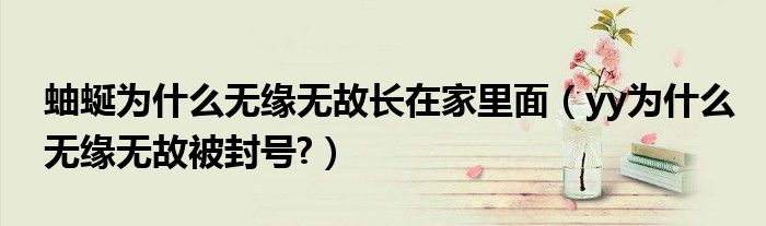 大家好,今天小悦来为大家解答以上问题。蚰蜒为什么无缘无故长在家里面,yy为什么无缘无故被封号?很多人还不知道,现在让我们一起来看看吧!