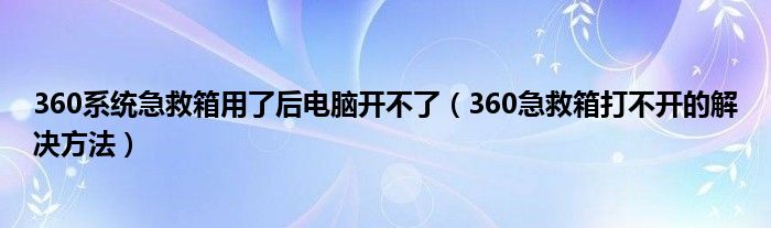 大家好,今天小悦来为大家解答以上问题。360系统急救箱用了后电脑开不了,360急救箱打不开的解决方法很多人还不知道,现在让我们一起来看看吧!